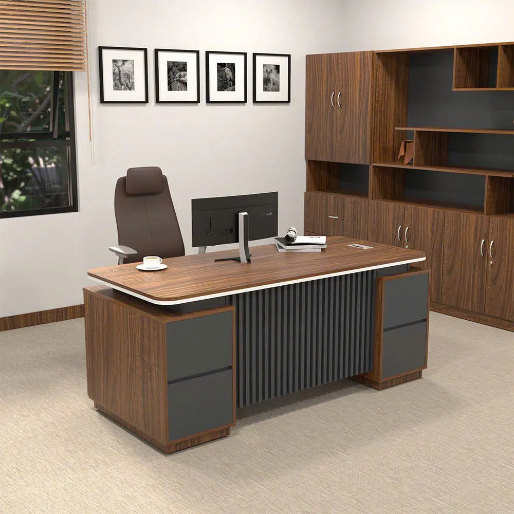 Trong văn phòng lãnh đạo, chiếc bàn giám đốc không chỉ là nơi làm việc mà còn đại diện cho phong thái và sự chuyên nghiệp của người đứng đầu. Bàn Giám Đốc Hiện Đại BGĐ116 được thiết kế sang trọng, nổi bật với phần yếm sọc đối xứng độc đáo, mặt gỗ nâu phối viền trắng tinh tế. Đây là sự kết hợp hoàn hảo giữa thẩm mỹ hiện đại và công năng tối ưu, phù hợp với không gian làm việc đẳng cấp.
