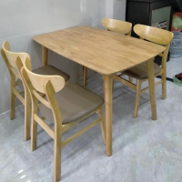 - Thiết kế với các khối gỗ bo tròn ghép nối với nhau. Chân bàn và chân ghế kế hợp mặt bàn, mặt ghế tạo nên chiếc bàn ăn vững chãi, ghế chắc chắn và ổn định có thể đứng vững với mọi cân nặng và địa hình khác nhau.